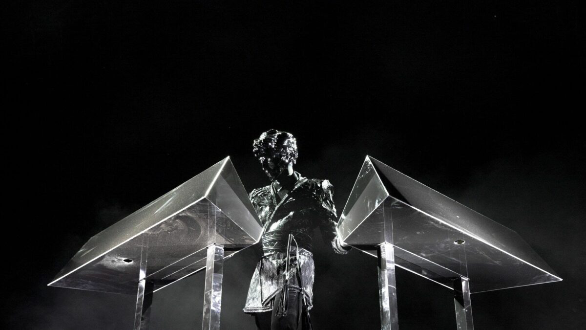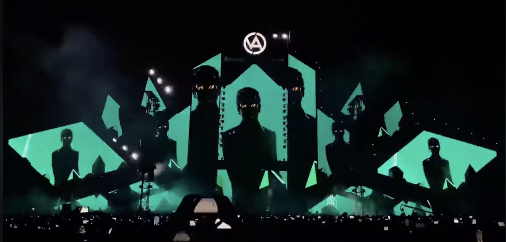 반면 2025 VAC의 무대는 정면 맨 위에서 정점을 찍고 양쪽으로 쭉 내려오는 모양으로 여러개의 스크린들이 모여있죠. 이 형태는 마치 인간의 흉상을 떠올리게 합니다. 여기서 우리는 한 가지의 인사이트를 얻을 수 있는데, 그것은 바로 무대는 단순히 공연이 발생하는 공간일뿐만 아니라 아티스트의 신체 확장 그 자체라고 할 수 있다는 것이죠. 거기다 게사펠슈타인은 이 무대에서 눈동자를 추가했죠. 흔히 매체에서 눈동자가 정면을 향하게 연출되면 관객들은 뜨끔하게 됩니다. 자신이 '보는 주체'에서 '보이는 객체'로 전락하기 때문인데, 이 공연에서 게사펠슈타인은 그를 아주 영리하게 활용했다고 할 수 있습니다.